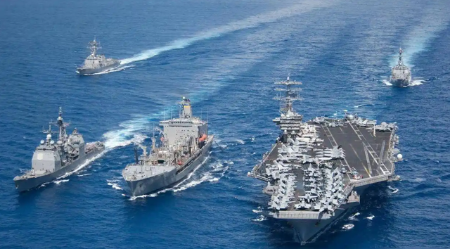 第一种是"全球送货"能力,也就是军力投射。美国这哥们相当于在全球开了N个"快递网点",几百个军事基地加11个航母战斗群,不管哪里出事,航母战斗群带着战机导弹就能"次日达"。